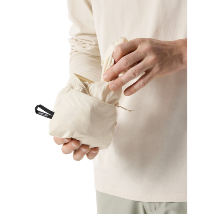 A kabát minimalista kialakítása lehetővé teszi, hogy könnyen összecsomagolható legyen a mellzsebbe, ami azt jelenti, hogy könnyen elrejthető a pulóverbe vagy hátizsákba. Ezenkívül egy akasztóval van ellátva, amely megkönnyíti a rögzítést a beülőhöz vagy hátizsákhoz, így mindig kéznél van.