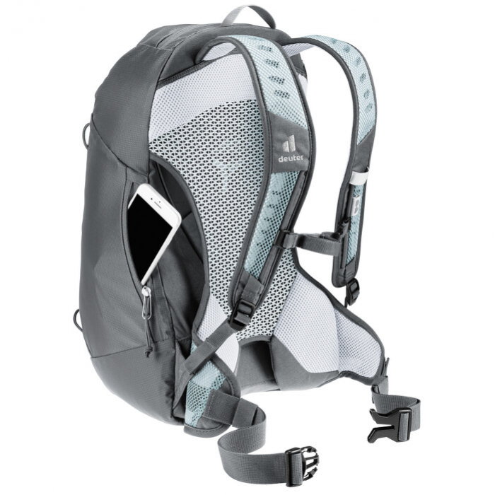 Szuperkönnyű, kényelmes és jól szellőző hátizsák túrázónőknek – ez a Deuter AC Lite 15 SL. Az AC Lite hátizsák sorozat ideális egynapos túrákra, különösen alacsony tömegét, kényelmét és légáteresztő képességét fogja értékelni. Az innovatív Aircomfort hát rendszer maximális szellőzést biztosít, a stabil hátkeret rugalmas acélból készült. A hálós anyag a háton átengedi a levegőt, így kevésbé izzad. A kétirányú mellkaspánt biztosítja a szoros rögzítést. Az újrahasznosított anyagokkal kombinálva az AC Lite 15 SL kiváló kényelmet és tömeg arányt nyújt, miközben tiszteletben tartja a környezetet. A Slim Line verzió rövidebb és karcsúbb női hátakhoz van igazítva, megelőzve a klasszikus szabások elcsúszását.