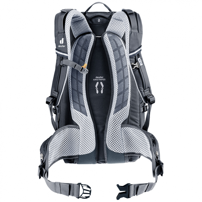 A Deuter Trans Alpine 30 hátizsák ideális hegyi kerékpárosok számára, akik megbízható hátizsákot keresnek kerékpártúrákhoz és többnapos túrákhoz. Szilárd illeszkedést kínál, az Airstripes hátkialakítás alumínium rudakkal biztosítja a biztonságos rögzítést, maximális szellőzést a formázott habcsíkoknak és légáteresztő hálónak köszönhetően, amit értékelni fog a nehéz túrákon és lejtmeneteken. Szerszámok és pumpa, mobiltelefon és térkép számára zsebekkel, két rugalmas oldalzsebbel a palackok vagy védőfelszerelések számára és elülső zsebbel a mászósisak számára van felszerelve. A fő rekesz könnyen kezelhető és átláthatóan szervezhető, ideális többnapos túrákra, ahol ruházatot és kabátot kell csomagolni. Minimalistáknak az alsó rekesz hálózsák tárolására szolgál, és a hátizsák kompatibilis egy 3 literes hidratációs rendszerrel. A Trans Alpine 30 a hegyi kerékpározás egyik legkelendőbb hátizsákjává vált, köszönhetően okos elrendezésének és változatosságának.