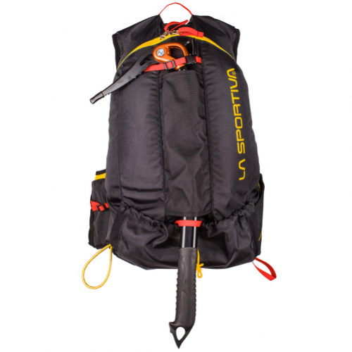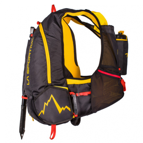Ultra könnyű sítúra hátizsák La Sportiva, futómellény stílusban, ideális sítúra versenyekhez vagy gyors edzésekhez. Rögzíthető rá síléc és jégcsákány, van hely lavinafelszerelésnek és külön rekesz jégmászó hágóvasnak, valamint elegendő hely energia szeleteknek és folyadékoknak.