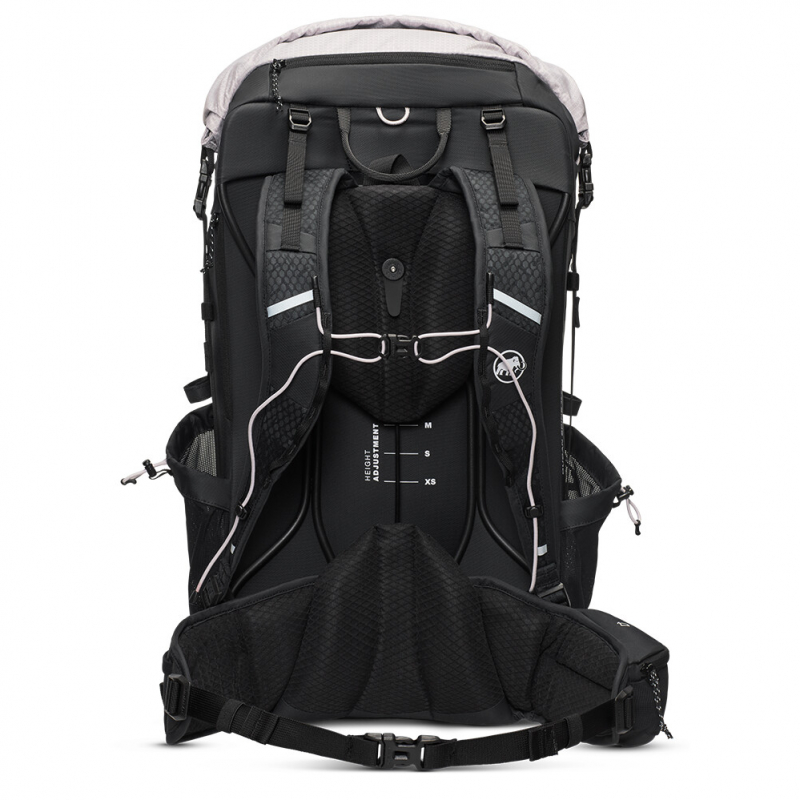 A Ducan Spine 28-35 women a svájci Mammut márkától egy női hátizsák, amely ideális egynapos kirándulásokhoz vagy hétvégi akciókhoz minimális tömeggel. A továbbfejlesztett Mammut Active Spine 3.0 hátrendszer alkalmazkodik a gerinc mozgásaihoz és egyenletesen osztja el a súlyt az egész testen, ami kényelmes viselést biztosít hosszabb túrák során is. A hátizsák rugalmasságot kínál a térfogatban, amely a felső részén található roll top zárás és az alsó részén található nagy cipzár segítségével 28–35 liter között állítható. Fontos tárgyak, mint a vízpalackok, mindig elérhetők a hálós zsebekben, az energiaszeletek a nagy hálós zsebekben a vállpántokon tárolhatók. A mobiltelefon számára egy kihajtható zseb található a derékpánton, így minden, amire szüksége van, kéznél lesz.
