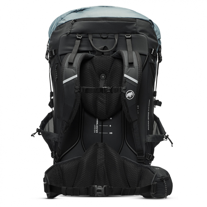 A Ducan Spine 50-60 Women a svájci Mammut márkától kifejezetten nők számára tervezett hátizsák, akik többnapos kirándulásokhoz keresnek hátizsákot. Ez a hátizsák kiemeli a kényelmet, a mozgás szabadságát és a felszerelés könnyű elérését. A továbbfejlesztett Mammut Active Spine 3.0 hátrendszer alkalmazkodik a gerinc mozgásaihoz és egyenletesen osztja el a hátizsák súlyát, növelve a viselés kényelmét. A hátizsák könnyen nyitható a felső részén található roll top és az alsó részén található nagy cipzár segítségével. A hátizsák térfogata 50 és 60 liter között változtatható, ami rugalmasságot biztosít az igényei szerint. Fontos dolgok, mint például a vízpalackok, mindig elérhetők az oldalsó hálós zsebekben. Az energiaszeletek a vállpántokon található zsebekben tárolhatók. A mobiltelefon számára egy kihajtható zseb található a derékpánton.