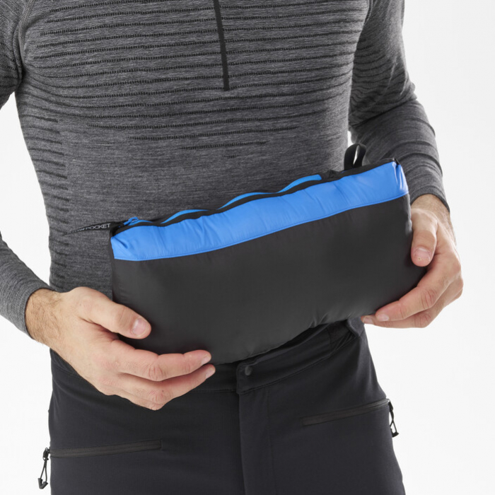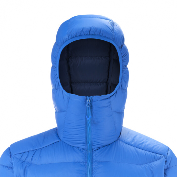 A TORAY® LIGHT RIP STOP felső anyag könnyű és strapabíró. A meleget újrahasznosított kacsa pehely és szintetikus REPREVE® RECYCLED SYNTHETIC DOWN szigetelés biztosítja, amely megőrzi a hőérzetet még nedvesedés esetén is. A kapucni jól illeszkedik a fejhez, és további védelmet nyújt.