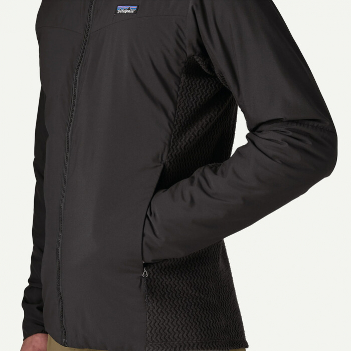A jobb szellőzés érdekében az oldalakon, hónalj alatt és a háton R1® Air polár panelek találhatók, amelyek támogatják a légáteresztést és a nedvesség elvezetését. Az üreges fonal magja gyorsítja a száradást és fenntartja a hőkomfortot mozgás közben. A dzseki rugalmas kapucnival, központi cipzárral és két alacsony profilú cipzáras zsebbel van ellátva, amelyek nem zavarják a mászóbeülő vagy hátizsák derékpántjának viselését.
