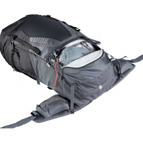 A Deuter márka Futura Air Trek túrahátizsákja ideális többnapos kirándulásokhoz. Fedezze fel a természetet krosnákkal, amelyeknek köszönhetően a háta nem lesz olyan, mint egy tó pár lépés után. Erről az Aircomfort hátrendszer hálóval és fém vázzal gondoskodik, amelyet nagyon egyszerűen beállíthat a testmagasságának megfelelően. A vállpántok az ActiveFit felfüggesztési rendszernek köszönhetően alkalmazkodnak a hátához. A mozgatható csípőöv segít a hátizsákot a hát tengelyében tartani, miközben traverzál vagy felfelé halad.