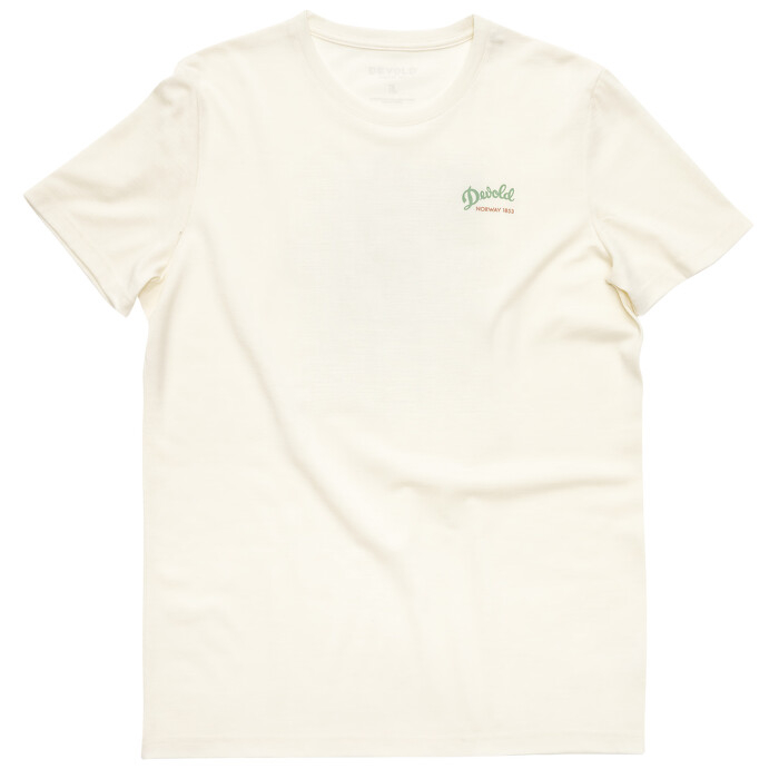 A norvég Devold márka Premium Woodworker Tee férfi merinó pólója grafikával a hátán kényelmes és sokoldalú – ideális jógához, görkorcsolyázáshoz, munkába vagy utazáshoz.
