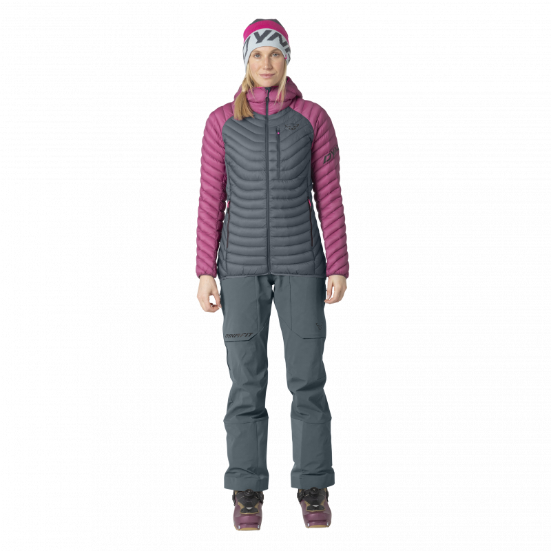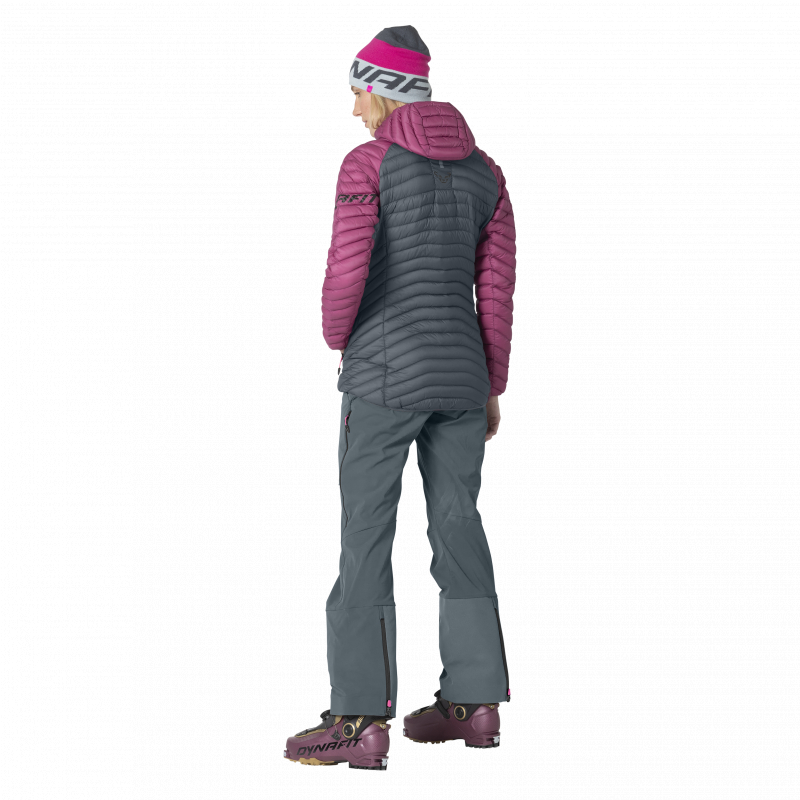 A Dynafit Radical Down példzseki kifinomult szabásával, minőségi kidolgozásával és vonzó dizájnjával tűnik ki. Hideg napokon megbízhatóan melegen tart a prémium minőségű, tanúsított libapehely töltetnek köszönhetően, amely 800-as töltőerejű és 95/5 arányú pehely/piheszál összetételű. A pehely ismert kiváló szigetelő képességéről nagyon alacsony tömeg és kis csomagolási térfogat mellett. A pehely egyetlen gyengesége a nedvességre való érzékenysége. Ha nedves lesz, összetapad és elveszíti térfogatát, így elveszíti szigetelő képességét. Pontosan ezért lett a prémium libapehely speciális technológiával kezelve ebben a dzsekiben. Ez a vízlepergető kezelés lehetővé teszi, hogy a pehely megtartsa sűrűségét és térfogatát még nedvesség hatására is, így továbbra is melegen tart. A pehely ráadásul gyorsabban szárad, és a dzseki mosógépben mosható minőségvesztés nélkül.