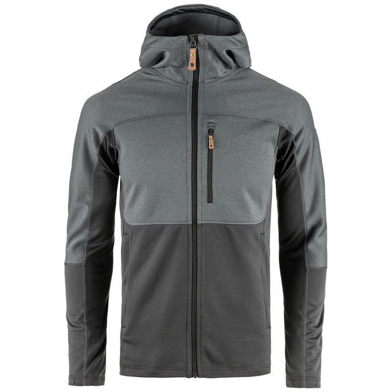 A svéd Fjällräven márkájú férfi teljes cipzáras pulóver ideális választás gyorsan száradó középrétegként, amely hatékonyan elvezeti a nedvességet szabadtéri kirándulások során. A pulóver két különböző fleece anyagot kombinál, így biztosítva meleget ott, ahol a leginkább szükséges, miközben csökkenti a tömeget és a térfogatot összecsomagolva. A kapucni, a vállak és a mellkas sima kötött poliészter fleece-ből készült, amely részben újrahasznosított és puha bolyhos belső oldallal rendelkezik. Az oldalak, a törzs alsó része és az ujjak alsó része könnyebb rácsos fleece-ből készült, amely kiváló szellőzést biztosít.