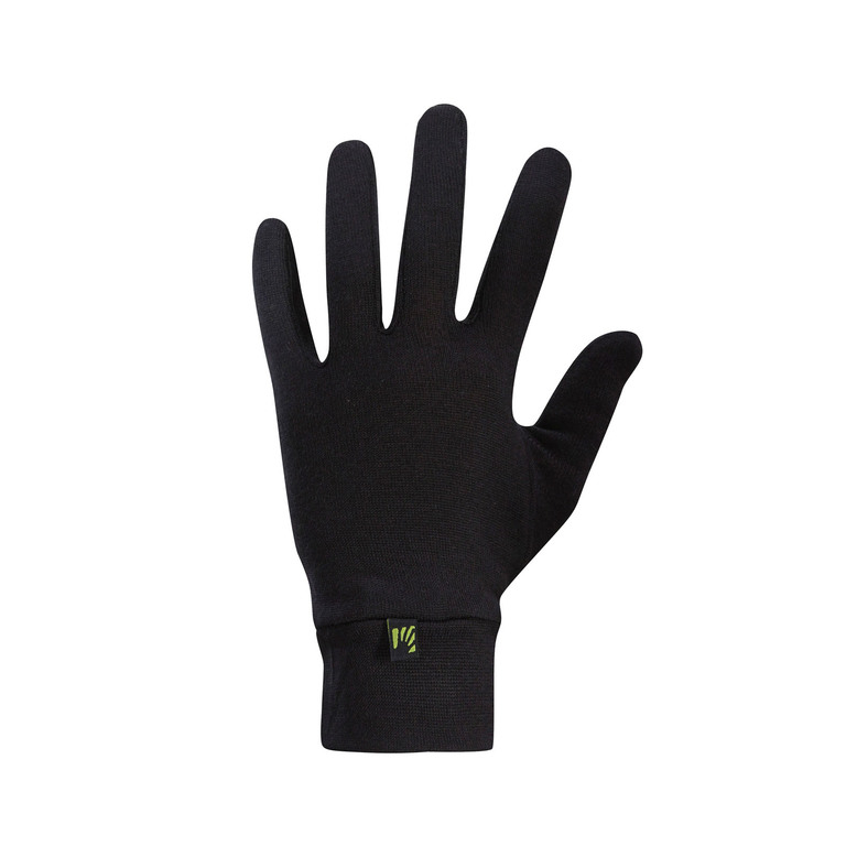 Fekete, kötött Karpos Merino kesztyűk ideálisak enyhe télre vagy meleg, első kesztyűként háromujjas kesztyűk alá. Optimális meleget, légáteresztést biztosítanak, és a rugalmas mandzsettával együtt kézhez simuló illeszkedést nyújtanak. Vékony, elasztikus kesztyűk téli túrázáshoz és mindennapi városi viselethez.