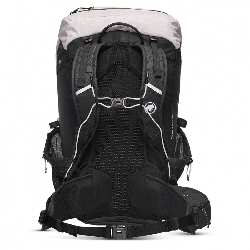 A Ducan 32 Women a svájci Mammut márkától egy könnyű és nagyon kényelmes női hátizsák, amely ideális egynapos kirándulásokra. A kidolgozott hálós hátrendszer elősegíti a levegő keringését, ami egész napos kényelmet biztosít, és a párnázás extra komfortot nyújt gyaloglás közben. A funkcionalitás és a modern dizájn kombinációja teszi a Ducan 32 Women hátizsákot az első választásává a nyugodt kirándulásokhoz a természetbe.