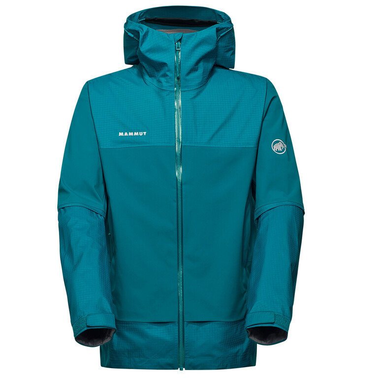A Mammut márkájú Ducan Guide HS Hooded Jacket férfi kabát ideális társ egész éves szabadtéri tevékenységekhez. Háromrétegű Mammut DRY Tour anyagból készült, ami vízálló, légáteresztő és szélálló. A praktikus hónalj szellőző cipzár egyszerű hőmérséklet-szabályozást tesz lehetővé fokozott fizikai terhelés esetén. A kabát állítható kapucnival rendelkezik, amely remekül illeszkedik, előformázott ujjak állítható mandzsettákkal és vízálló fő cipzárral. Két külső cipzáras zseb biztosít helyet az apróságoknak, míg a nagyobb belső zseb ideális a terjedelmesebb dolgok számára. A vállvarrások úgy vannak elhelyezve, hogy ne zavarjanak hátizsák viselésekor, és az alsó szegély igény szerint állítható. Ez a technikai kabát remek választás túrázáshoz, sítúrához vagy más szabadtéri tevékenységekhez – egészítse ki vízálló nadrággal, és készen áll a kalandra bármilyen időjárásban.