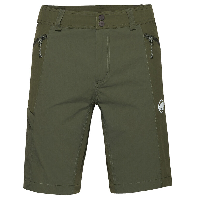 A Mammut Ducan Shorts férfi rövidnadrág funkcionális anyagokból készült, amelyek rugalmasak, elvezetik a nedvességet és ripstop panelekkel rendelkeznek, amelyek növelik a kopásállóságot. Ez a szabás és konstrukció ideálissá teszi a rövidnadrágot a kihívást jelentő alpesi terepen is. A derék részben elasztikus és övbújtatóval van kiegészítve. Két cipzáras zseb elegendő helyet biztosít az apróságoknak, és a nadrágzseb hozzáférhető marad mászóbeülő viselése közben is.