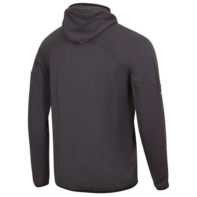 A Direct Alpine DRAGON férfi pulóver Tecnostretch® Grid fleece anyagból készült, amely belső négyzetrácsos szerkezetének köszönhetően a legjobb tulajdonságokat kínálja. A plasztikus négyzetrácsos szerkezet a test és az anyag között keringő levegőréteget tart vissza, amely elvezeti a felesleges testnedvességet és kellemes hőmérsékletet biztosít. A kapucni rugalmas szegéllyel van ellátva. A cipzár védőpatenttal van ellátva az áll területén. A mellkasi cipzáras zseb elnyeli a szükséges értékeket. A hátsó rész meghosszabbított. Az alkar területén lévő megerősítés növeli a pulóver strapabírását.