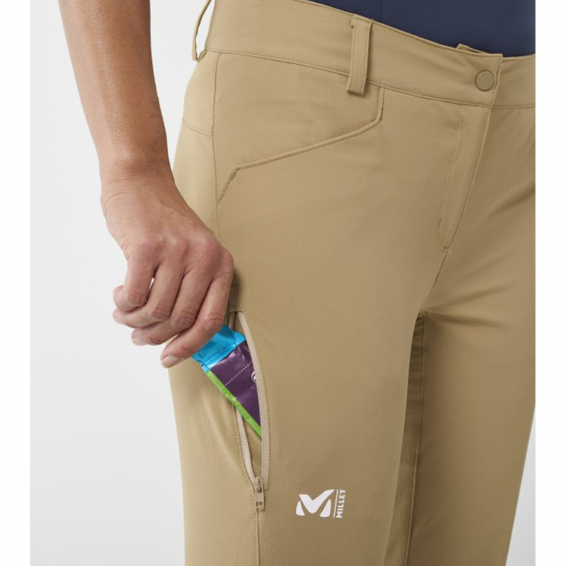 A Millet TREKKER STRETCH PANT III Women női nadrág könnyű, légáteresztő és gyorsan száradó anyagból készült. A rugalmas anyag nem korlátozza a mozgást. A magasabb derék kellemesen illeszkedik az alakhoz. A sok zseb mindent elrejt, ami szükséges. Az előformázott térdek biztosítják a mozgás szabadságát.