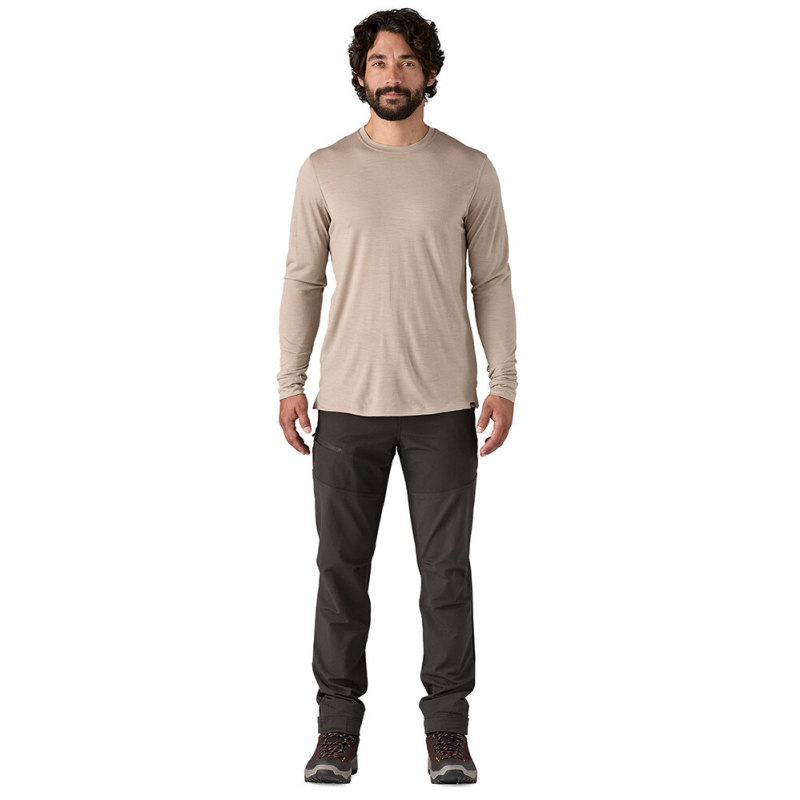 A Patagonia Terravia Peak Pants Regular férfi nadrágok valódi áttörést jelentenek a technikai outdoor ruházatban. Az újrahasznosított nejlon és elasztán kombinációja korlátlan mozgásszabadságot biztosít, ami elengedhetetlen a nehéz mászások során. A két rétegű anyag PFAS-mentes vízlepergető kezeléssel megbízhatóan véd az eső és szél ellen, ugyanakkor elég könnyű és kényelmes egész napos viselésre. Szellőző cipzárak, megerősített panelek és ergonomikus szabás minimalizálják a súrlódást, és lehetővé teszik a maximális teljesítményt mászás, túrázás vagy sítúra során.