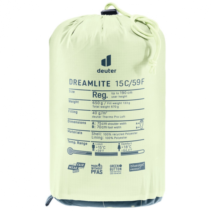 Alacsony tömegével és kompakt méreteivel összecsomagolva ideális bármilyen utazáshoz. A teljesen kinyitható dizájn lehetővé teszi, hogy kényelmes takaróvá alakítsd, ami nagyszerű, ha az éjszakai hőmérséklet emelkedik. A DreamLite 15 ovális formát kínál, amely elegendő helyet biztosít azoknak, akik szeretnek mozogni alvás közben, vagy az oldalukon aludni.