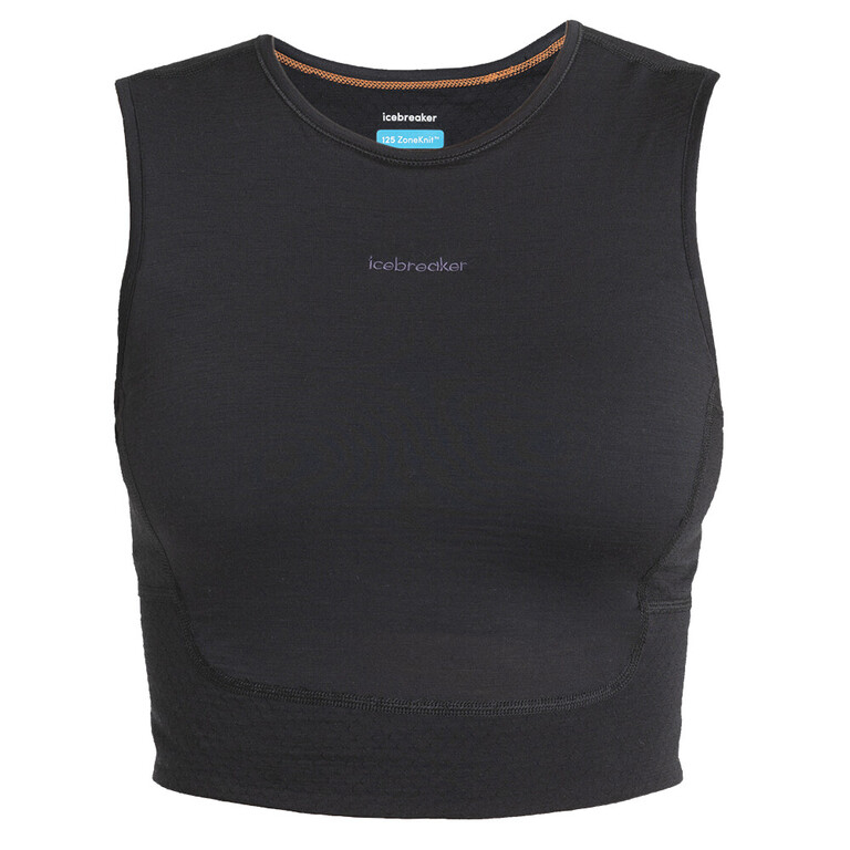 Női modern trikó 125 ZoneKnit™ Energy Wind Cropped Bra-Tank az új-zélandi Icebreaker márkától rövidített crop hosszban. A ZoneKnit™ technológia a test zónáit térképezi fel. Különböző sűrűségű kötött panelek váltakozásával jobb hőszabályozást biztosít fizikai aktivitás során, és kiválóan elvezeti a nedvességet. A Cool-Lite™ szövet légáteresztő merinó gyapjút kombinál természetes lyocell anyaggal. Az eredményül kapott anyag bőrbarát, ellenáll a szagoknak és nagyon gyorsan szárad.