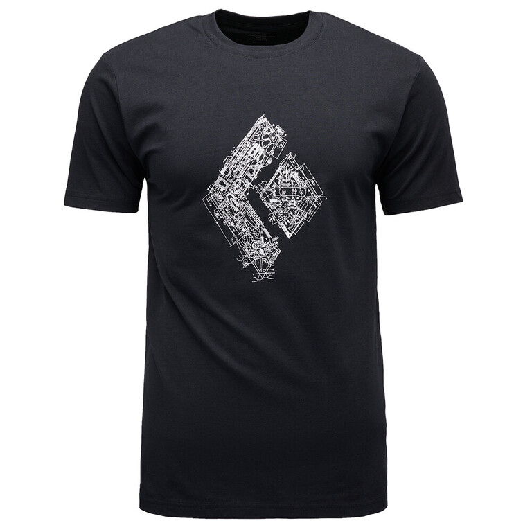A Black Diamond márkájú Engineered Diamond SS Tee férfi pamutpóló feltűnő logóval ideális minden mászónak. Legyen szó sziklamászásról vagy edzőtermi falmászásról, ez a póló maximális kényelmet biztosít. Kellemes és enyhén rugalmas anyagból készült, amely nem korlátozza a mozgást. A mellkasi nyomat egyértelműen kifejezi a mászás iránti szenvedélyét.