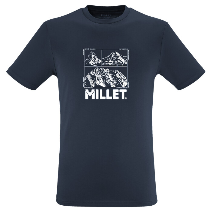 A póló 100% organikus pamutból készült, ami kellemes érzést biztosít a bőrön és kényelmes viseletet nyújt egész nap. Az eredeti grafika három ikonikus alpesi csúccsal inspiráló hegyi karaktert ad a pólónak, ami jellemző a Millet márkára.
