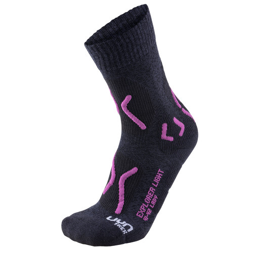 Női zokni a UYN márkától, amely trekkinghez ajánlott. Stabilitást biztosítanak és csillapítják az ütéseket speciális technológiákkal. Anatómiai szerkezetüknek köszönhetően pontosan úgy illeszkednek, ahogy szükséges. Az anyag Natex-szel kombinált, amely ricinusolajból készült poliamid. Ennek az összetételnek köszönhetően a zoknik 25%-kal könnyebbek, jobban légáteresztők és akár 50%-kal gyorsabban száradnak, mint bármely más nylonból készült zokni.